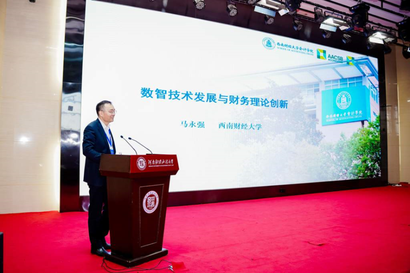 第一阶段主旨报告的第二位报告人是西南财经大学党委常委、副校长马永强教授,报告题目为“数智技术发展与财务理论创新”。马永强教授从“重新认识财务理论的发展、数智实践发展与财务研究现状、财务理论创新的可能方向或领域”三个层次,依次展开自己对于已处于第四次科技革命浪潮下的当代财务管理理论创新的思考。他简要回顾了现代会计学和财务管理学知识体系产生的经济和技术背景,强调了近现代经济学和管理学的学科发展对于人类命运进步所起到的历史作用。马永强教授结合第四次科技革命的技术特性,强调了我国财务管理领域的专家学者要从认识上重视对于现有财务管理知识体系和分析工具的突破,提出更加适应数智化时代下市场运行和企业价值增长的新理论、新工具。最后,马永强教授殷切嘱托参会的学生们要珍惜在校学习时间,利用各种有效的途径去充分学习和掌握人工智能技术原理和应用工具,拥抱技术、拥抱实践,为国家的高质量发展贡献自己的力量。