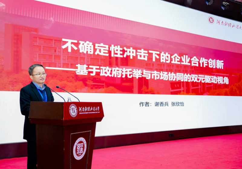 第二阶段的第二场主旨报告人为河南财经政法大学会计学院院长谢香兵教授。他以我国高科技企业自2018年开始面临的严峻的国外制裁和“断供”风险为背景,探究了当我国上市公司被列入美国实体清单制裁后,外部经济和政治冲击对于推动我国企业合作创新影响以及其中政府托举和市场协同双元驱动的机制。研究结果显示:受到外部不确定性冲击的我国上市企业反而增强了其对外合作创新的投入和产出水平乃至研发质量,而我国中央和地方政府同时期出台的支持性产业政策、财政补贴、税收优惠等托举政策起到了正向调节作用。