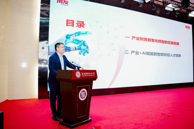 上午的最后一场主旨报告人为新道科技股份有限公司助理总裁的眭召强先生。新道科技股份有限公司成立于2011年,依托用友集团丰富产业资源、场景和强大技术优势,为高等院校和职业院校提供数智财经、新工科、数智营销等领域的综合教育服务,助力经管专业数智化人才的培养。本次主旨报告中,眭召强先生简要阐明了我国各类企业在数字化、智能化转型发展过程中遭遇到的一些棘手问题和挑战,着重强调了在我国各类高等院校将“人工智能”、“大模型”、“智能体”等新兴技术充分融入各层次人才培养的重要性与急迫性。