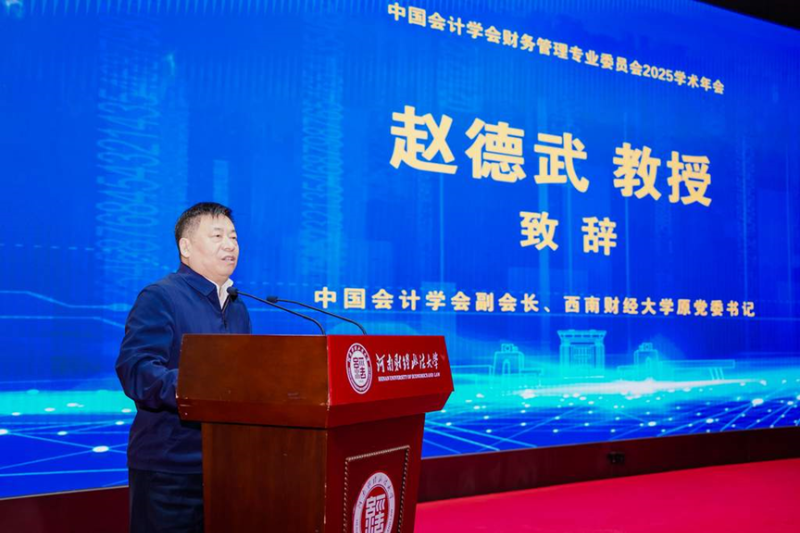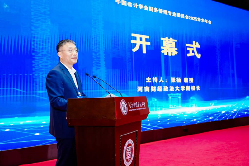 2025年11月29日,由中国会计学会财务管理专业委员会主办、河南财经政法大学会计学院承办的“中国会计学会财务管理专业委员会2025学术年会”在河南财经政法大学顺利举办。河南财经政法大学党委书记、校长司林胜,中国会计学会财务管理专业委员会(以下简称“专委会”)主任委员、西南财经大学原党委书记赵德武,中国会计学会副秘书长刘国强编审受邀出席开幕式并致辞。专委会副主任委员、山西财经大学党委副书记、校长田祥宇,专委会委员、西南财经大学党委常委、副校长马永强,天津财经大学营运资本管理研究所所长吴娜,专委会委员、河南财经政法大学会计学院院长谢香兵,新道科技股份有限公司助理总裁眭召强,受邀参加本次年会并发表主旨报告。开幕式由河南财经政法大学党委常委、副校长张扬主持。