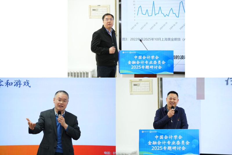 主题报告第三阶段由北京工商大学副校长毛新述主持。中国会计学会金融会计专业委员会委员张林做了题为《贵金属期货在实务中的应用》的报告,他详细解析了黄金期货价格波动特征与功能,分享了投机交易、资产配置及套期保值等实务路径。北京物资学院期货学院副院长单磊以《从套期会计视角认识期货市场》为题,强调期货服务实体经济的初心,阐述套期会计在防范套保变投机中的作用。安粮期货董事长、总经理韩文辉分享了题为《净额法核算对基差贸易的影响》的报告,他结合监管政策与行业案例,分析了净额法实施的制度保障与实践意义。